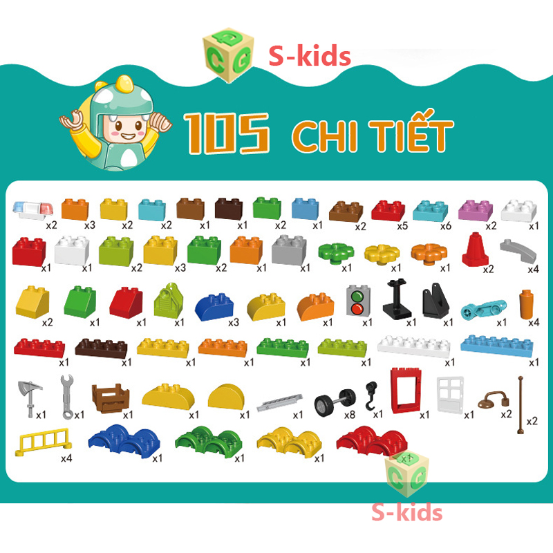 - Kích thước tiêu chuẩn, kết hợp được với các loại khối Duplo