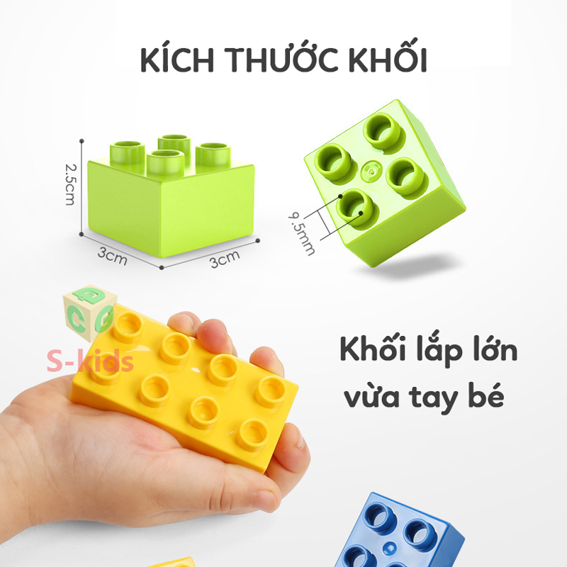 - Kích thước khối: khối lắp lớn vừa tay bé