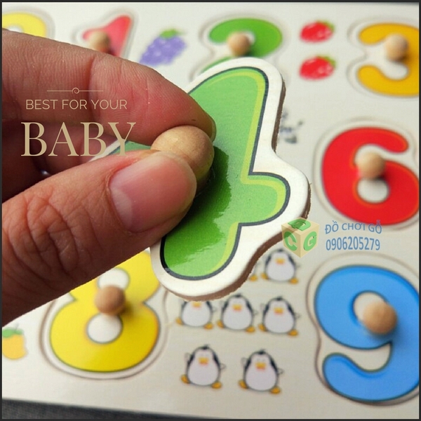 - Mô tả sản phẩm: Bảng ghép hình núm gỗ là một tấm bảng gỗ với những hình ghép vào các vị trí nhất định. Những hình ghép này được cắt bằng máy theo khuôn hình nên khi lắp vào sẽ khớp với các ô trống trên bảng. Những hình ghép được gắn núm cầm bằng gỗ để trẻ cầm dễ dàng và thuận tiện hơn. Có rất nhiều loại Bảng ghép hình núm gỗ với các hình ảnh ngộ nghĩnh và đa dạng. Bạn có thể chọn mua bảng ghép hình chữ số, hình côn trùng, hình trái cây hay hình động vật tùy theo ý thích. Trên tấm bảng gỗ có tên của hình ghép bằng tiếng Anh nên trẻ còn có thể vừa học vừa chơi và nhớ kỹ cách đọc của chúng. Trẻ sẽ học được vô vàn kiến thức bổ ích khi chơi trò chơi này.