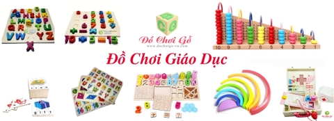 b, Đồ chơi gỗ giáo dục học đếm, chữ cái, hình khối
