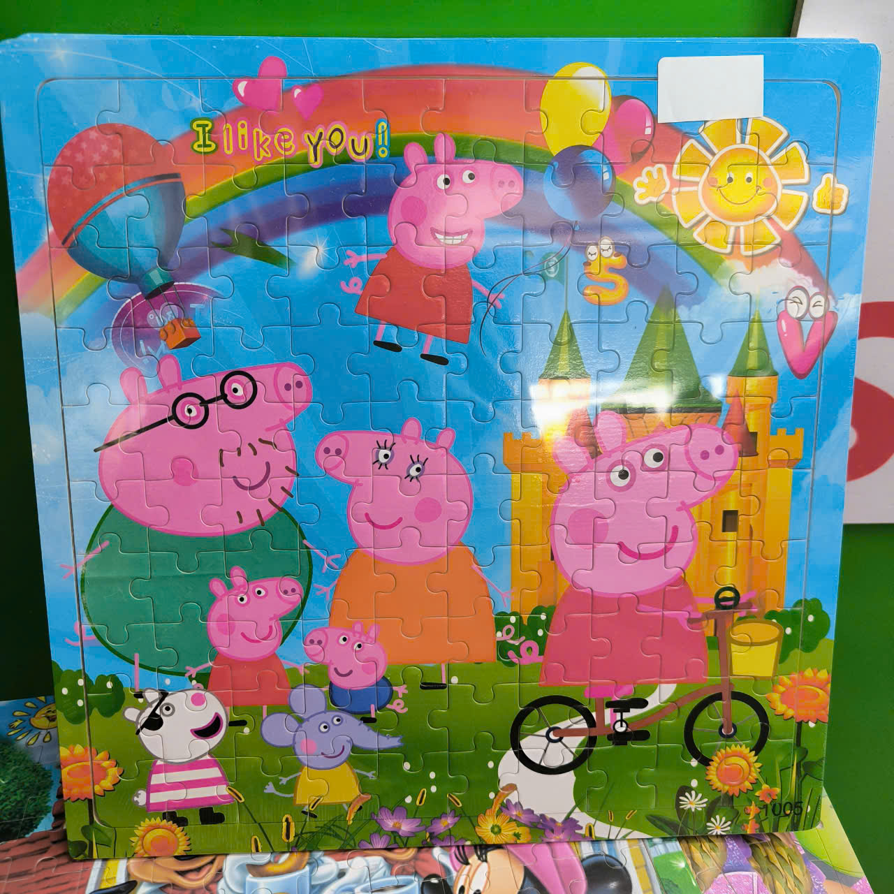 Bảng ghép 100pcs được làm bằng gỗ với rất nhiều hình ảnh đáng yêu thu hút sự chú ý cho bé thêm hào hứng khám phá