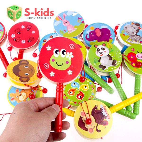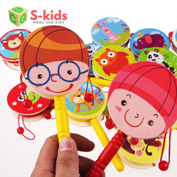 Đồ chơi cho bé 1 tuổi với chiếc cán nhỏ gọn, 2 mặt trống được trang trí đáng yêu kèm 2 dây hạt gỗ chắc chắn để tạo ra âm thanh vui nhộn