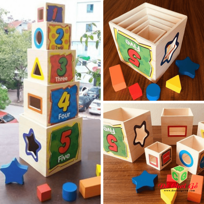 - Trên mỗi hộp gỗ còn có các con số, bé còn có nhận diện và tập đếm số nữa đấy. Thật là một món đồ chơi giáo dục toàn diện phải không nào??